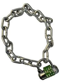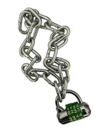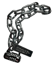 The HARDWARE™ Number Lock Chain features a 2-1/2 in. wide metal body for strength and durability and a diameter shackle is made of hardened steel, The soft touch dials with 2 grip points provide no-slip grip and keyless convenience.